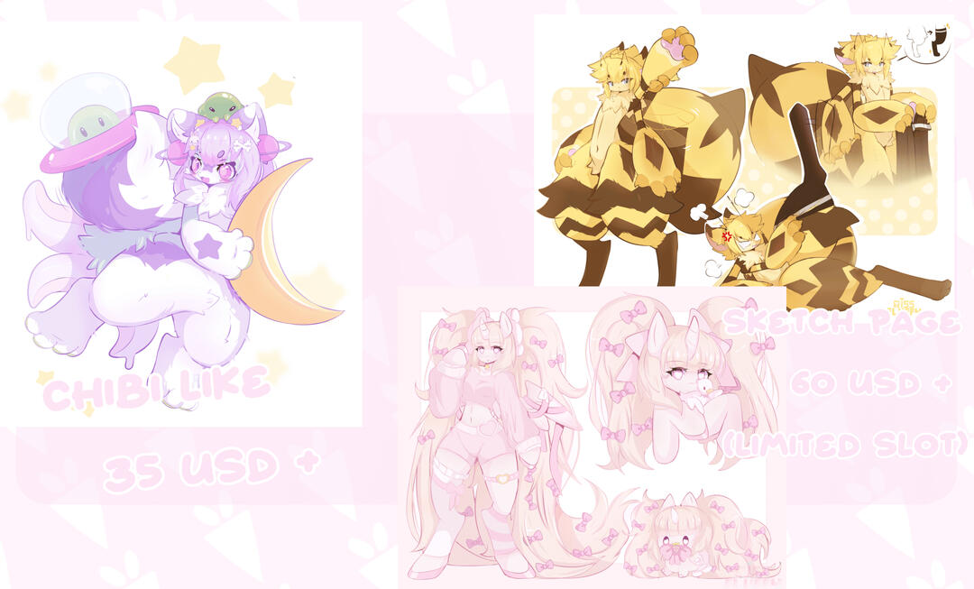 - Payment must be made in USD via Paypal.• The prices listed are base prices. Please keep in mind that they may change depending on things like character complexity, custom requests, unlisted requests, rush orders, etc.• I work at my own pace, so thank you for being patient! I want both of us to be happy with the final artwork. That said, you’re always welcome to ask me for updates at any time.• Once you approve the lineart, i’ll ask for a 50% non-refundable payment. This allows me to move forward with coloring. Before that, you can request any changes or adjustments you’d like!• You’ll get a full refund if i’m unable to finish your piece at all, or if you already sent the 50% payment but i haven’t started your project yet.• If i can’t finish your piece but you’d like to keep the colored lineart, i’ll refund you 25%.• If you cancel before i begin coloring, i may use the lineart in another artwork in the future.• By commissioning me, you’re allowing me to share your commission on my social media. Don’t worry—if it’s NSFW or something personal, i’ll always ask you first! And of course, you’ll be credited for your character.• Commissions are for personal use only unless we discuss commercial rights. If you’d like commercial use, extra fees may apply.• Do not feed my art to any kind of AI tool.• My art style is mostly kemono / kawaii anime, but i can adjust a little to match your preferences. If you feel my style doesn’t fit your vision, you’re free to cancel.By commissioning me, this means you have properly read, understood and greed to the terms of services listed above. Thank you!